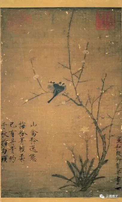 宋代 赵佶腊梅山禽图
