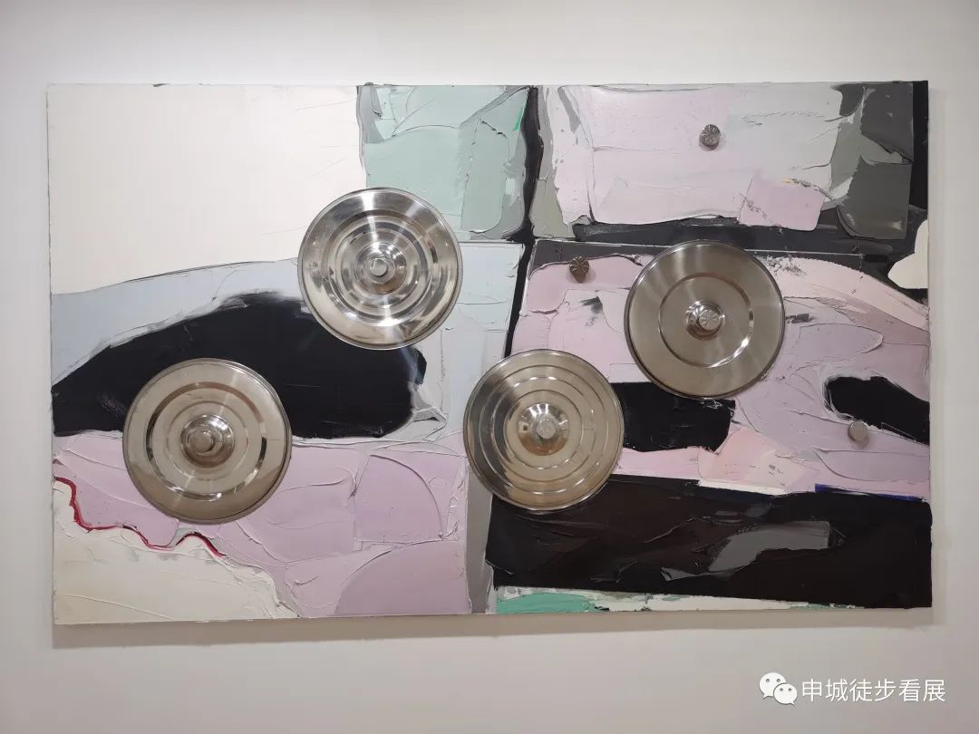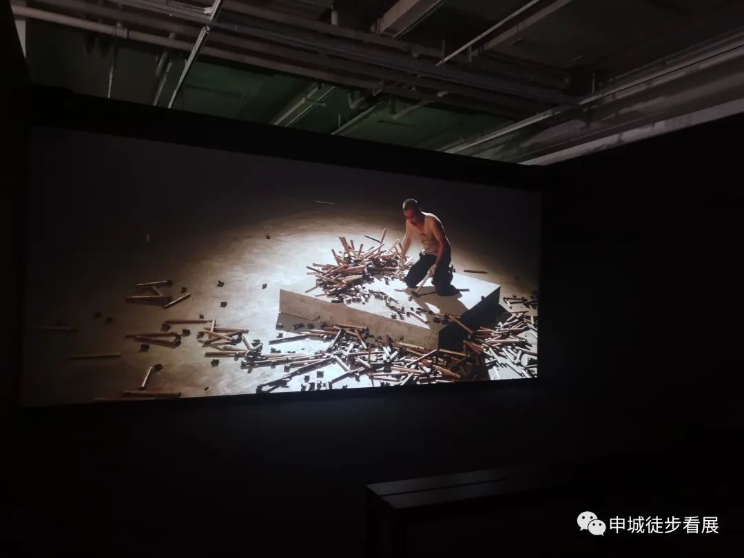 这次昊美术馆一楼展出的是由二十多位中外艺术家带来的装置、雕塑、视频等作品。其中有我熟知的张培力、周啸虎、历槟源、施勇等人。其中对张培力的《现场报道:物证一号》、李燎的《新概念腹肌》、李昢的《愿意变得脆弱—金属气球V3》、周啸虎的《你就是一块肉》以及马库斯·吕佩尔茨的系列作品印象深刻。