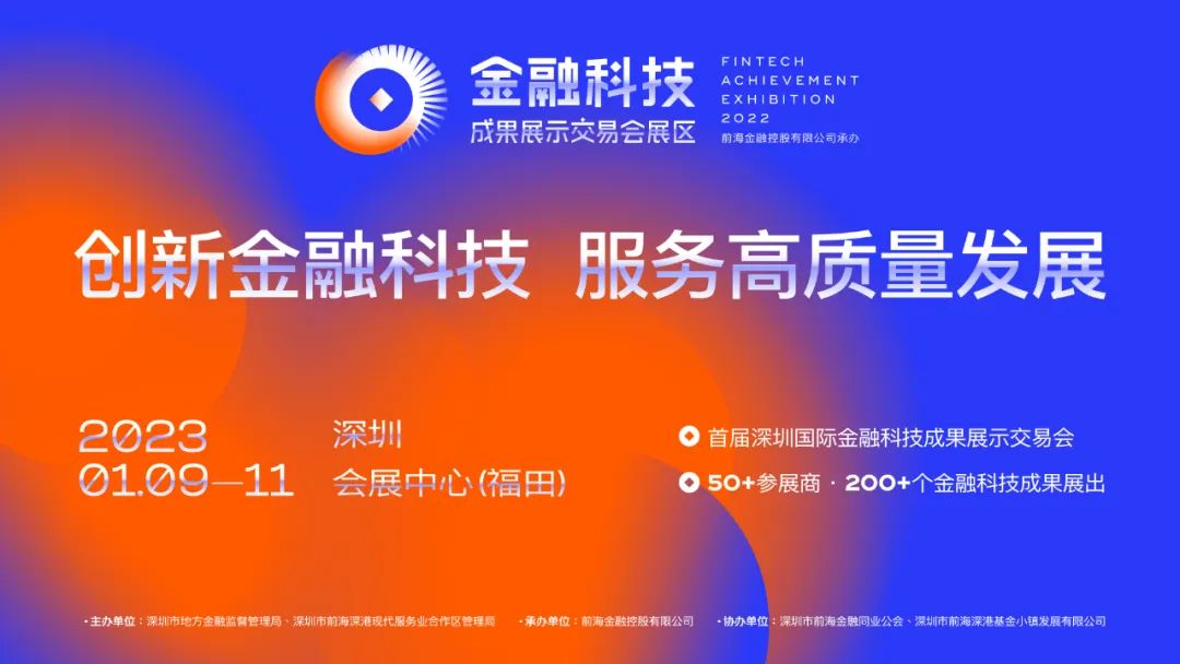 2023年1月9日-11日,以“创新金融科技 服务高质量发展”为主题的首届金融科技成果展示交易会将在深圳会展中心(福田)1号馆举办。届时,众多知名金融机构将亮相此次展会。