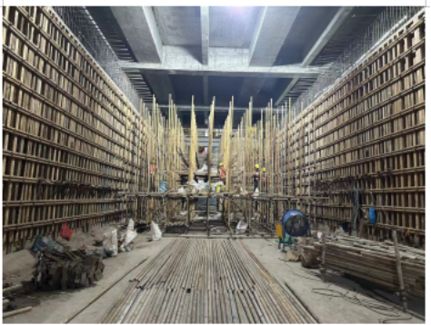 会展西过江隧道下穿广交会展馆四期扩建项目(以下简称:会展四期),存在交叉施工区域,因此“隧道-展馆”共建是项目的特点,也是各方关注的重点。施工过程中,会展四期工期紧张,并已先期开始施工,形成工序倒置,过江隧道外部施工环境发生重大改变,隧道周边已无法设置施工便道,施工空间也被压缩至会展四期结构零层板以下。在无法按原施工计划开展作业的情况下,项目部联合设计单位,重新调整施工方案,经专家论证,将原方案施工工序的“明挖顺筑”调整为“盖挖顺筑”,并增加通风、照明、地下通讯信号覆盖等安全保障措施。调整工序之后,原来施工空间受限的问题迎刃而解,为会展四期先行实施、按时投入使用创造了条件,同时确保过江隧道的后期建设有序推进。