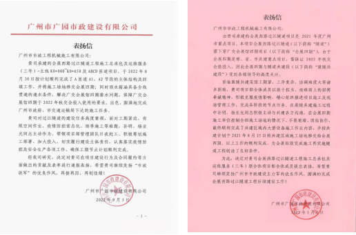 按照广州市政府会议精神和市交通运输局相关指示,要求全力配合会展四期建设并于2022年秋交会前投入使用。为确保过江隧道施工和配合会展建设两不误、两促进,项目部管理人员主动作为,明确施工目标,积极与共建各方沟通,有序穿插施工,倒排工期,先后顺利完成展隧共建段大型设备施工作业、阅江路雨水箱涵全线贯通、共建1、2区A匝道隧道结构施工回填等多个节点任务,及时为会展四期提供施工场地,解决了会展雨水排放的问题,为会展四期消防验收提供了场地条件。广州市交通运输局局长、总工程师等领导先后到项目开展调研,建设速度得到市交通运输局等部门充分认可,业主单位多次向项目部发来通报表扬。