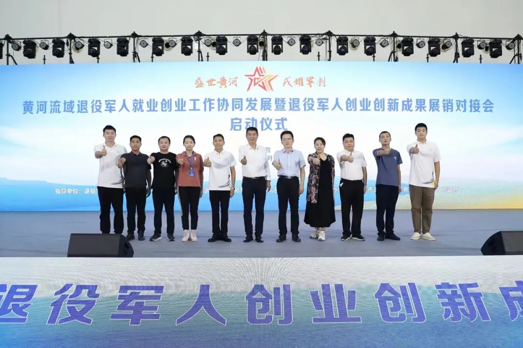 盛世黄河戎耀军创。日前,黄河流域退役军人就业创业工作协同发展暨退役军人创业创新成果展销对接会启动仪式,在山东省东营黄河国际会展中心举行。市退役军人事务局党组成员、副局长高峰带队,军创企业洛阳玄山生物科技有限公司等参加了此次活动。