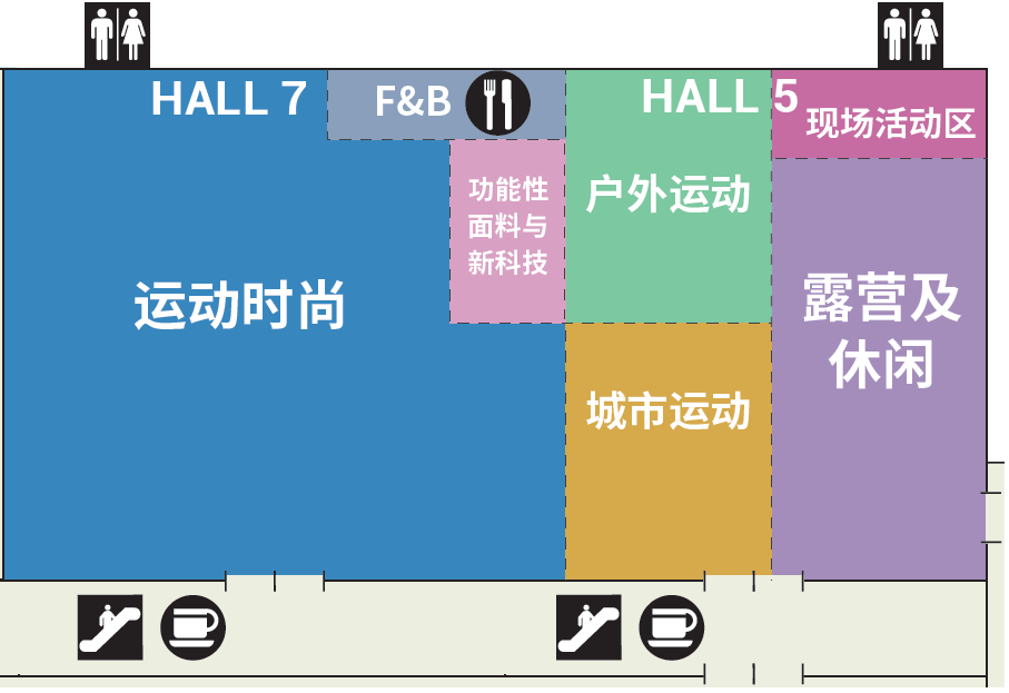 运动及户外展馆包含健身器材及配件、体育用品、野营及休闲用品、运动服装等多种类别产品。