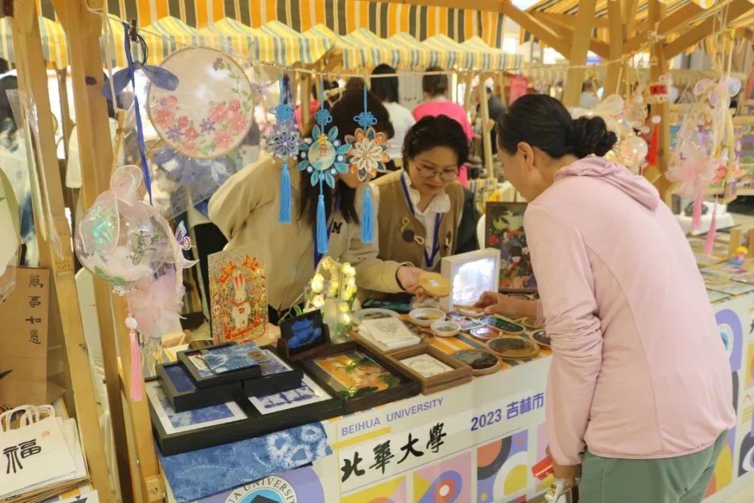 展区中,由共青团吉林市委负责的动漫潮玩展区和高校学生文创作品展区受到了市民朋友的关注和青睐,纷纷驻足欣赏、购买。