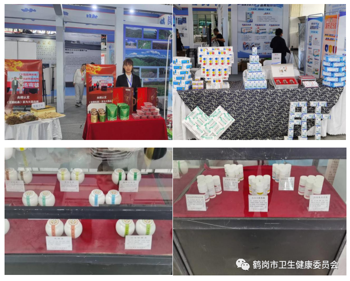 主要展品包括鹤岗市中医医院院内制剂软坚消瘰胶囊、朱氏活骨再生胶囊、颈痛痹消胶囊、腰痛痹消胶囊、加味牵正胶囊。市中医医院和市人民医院的膏方系列熬夜膏方、塑形膏方、美容膏方等以调理为主的通用膏方12种,其中润肺止咳膏、开胃健脾膏、养肺膏现场品尝。代茶饮系列润肺茶、健脾茶、减压茶等。中医特色疗法铜砭刮痧、泥疗、耳穴压豆、针灸、艾灸、拔罐、火龙罐、香囊等。市林业草原局道地中药材种子、种苗及产品,包含五味子、北苍术、黄精、苦参、黄芪、刺五加、防风、柴胡等20余种。哈药三精千鹤重点推介的治疗心脑血管疾病的逐瘀通脉胶囊、治疗风热型感冒的清开灵分散片、治疗皮肤病的生鲜茶是全国独家品种。