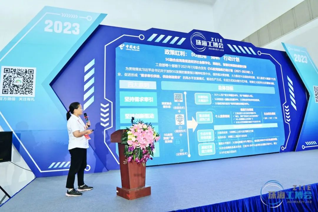 ▲中国电信股份有限公司广东分公司集团工业及5G行业专家 许文秀分享主题“中国电信5G定制云网赋能企业数字化转型”