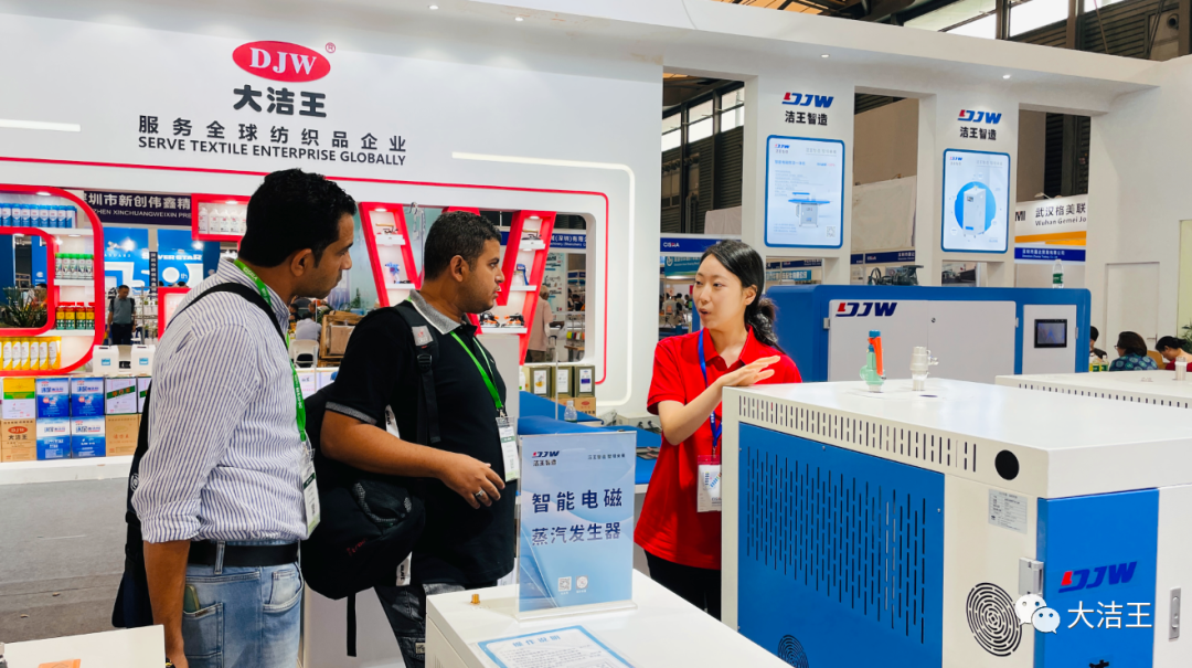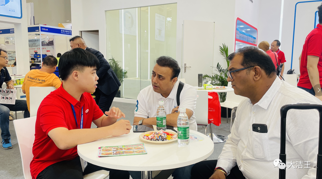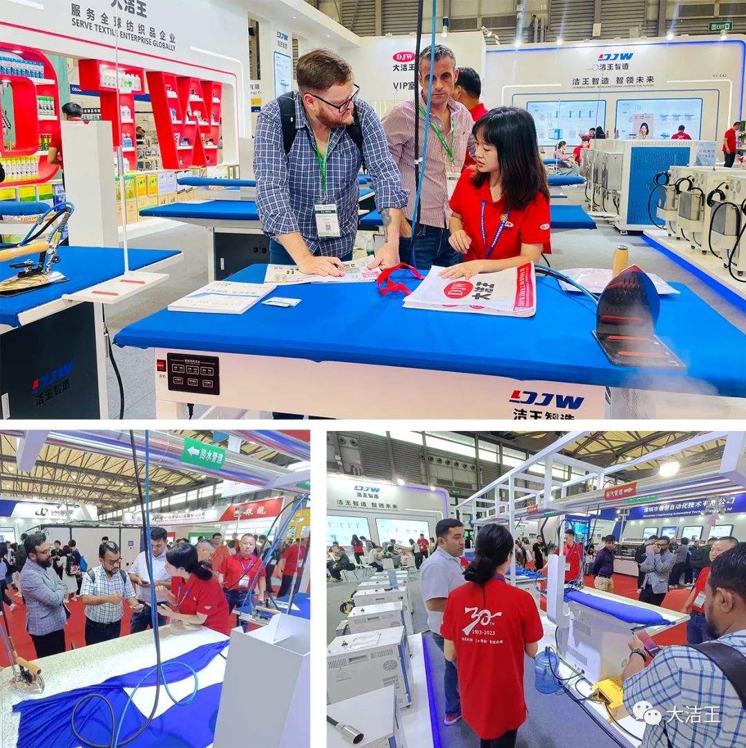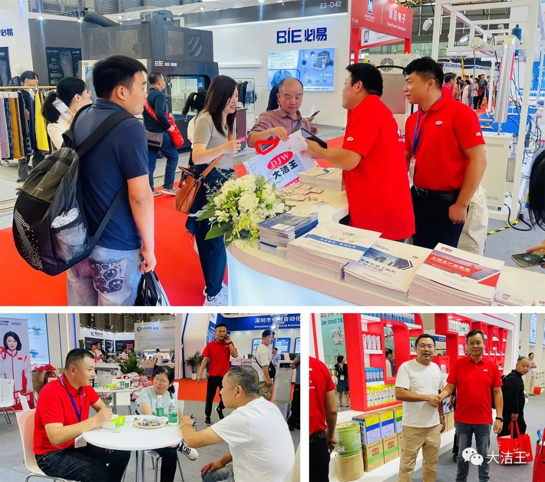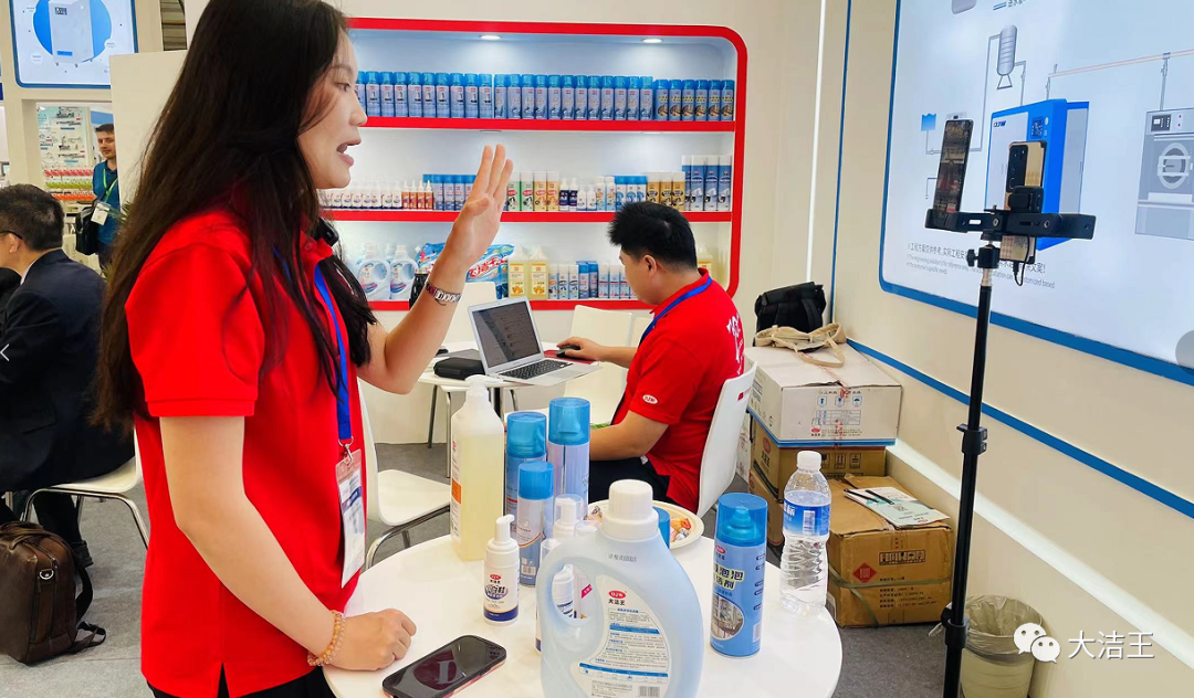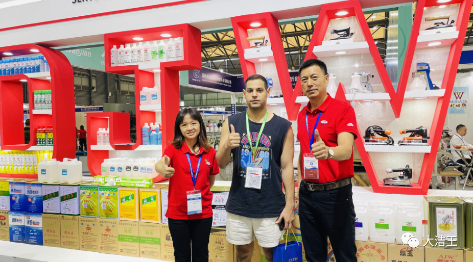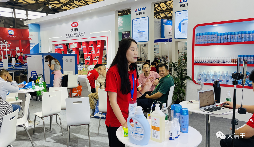 洁王展台内外熙熙攘攘、参展观众络绎不绝,洁王的展区陈列着琳琅满目的智能智烫产品、化工产品以及日化用品,吸引了众多参展商参观,并向工作人员咨询产品设计、性能等相关问题,在交流过程中,众多参展人员对洁王的展品表现出浓厚的兴趣。