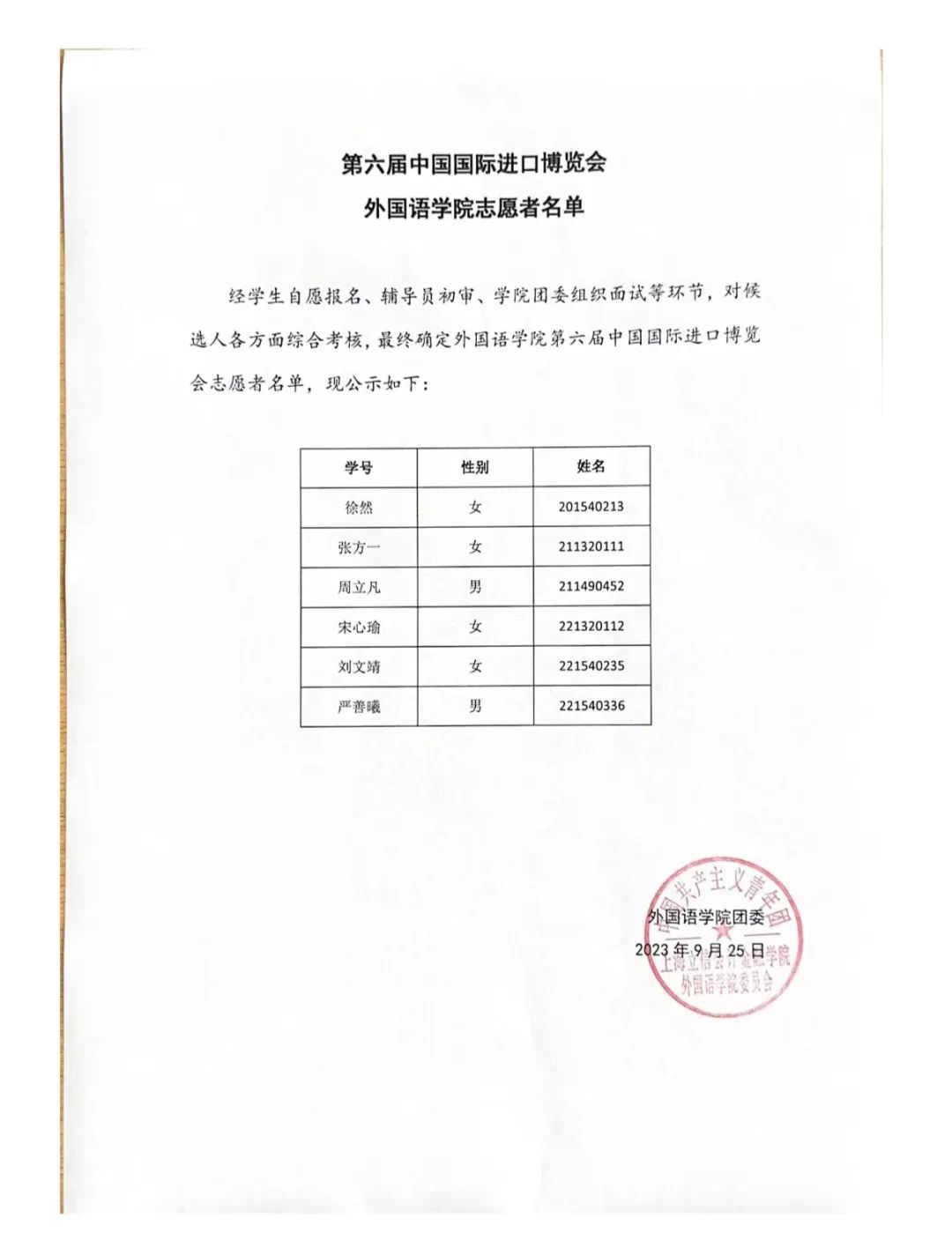 「公示」 | 外国语学院第六届进博会志愿者名单公示