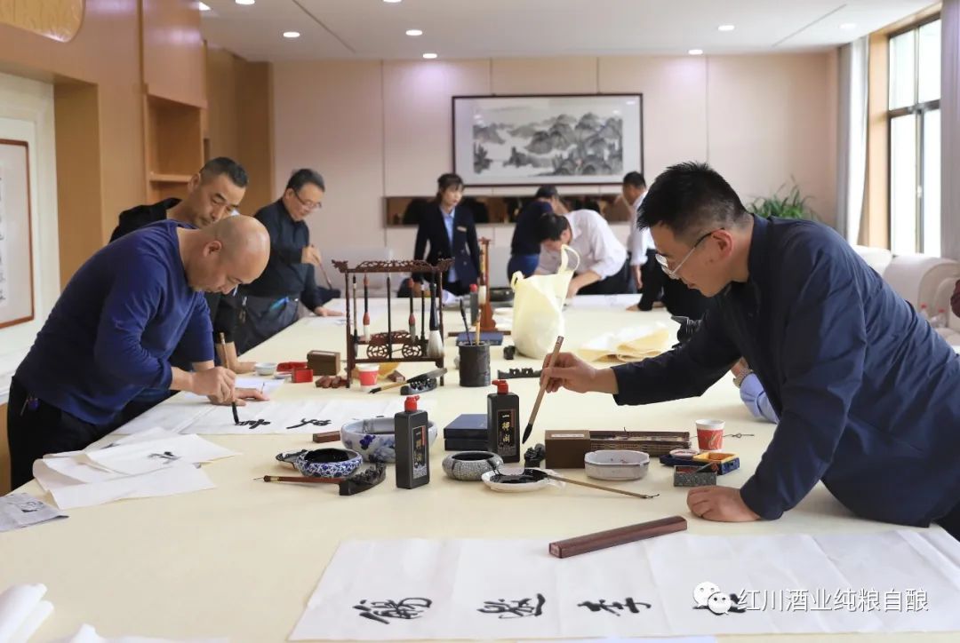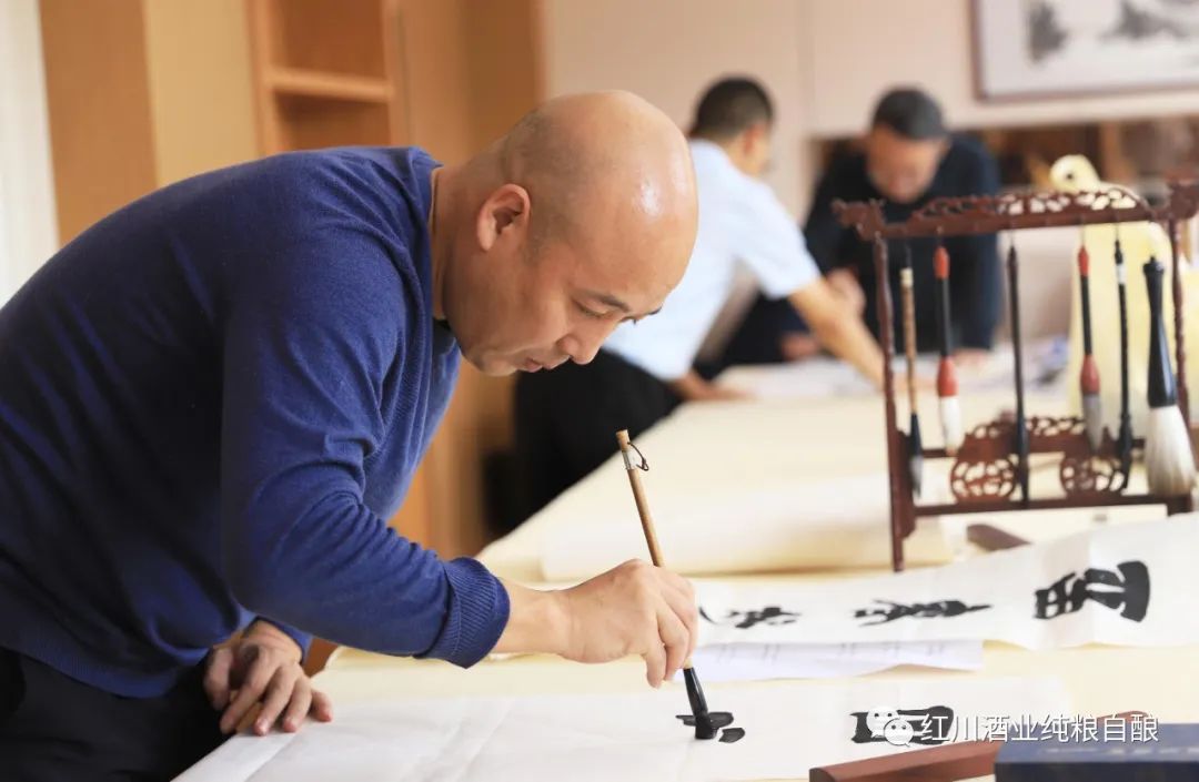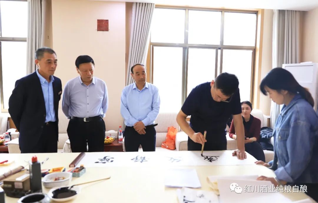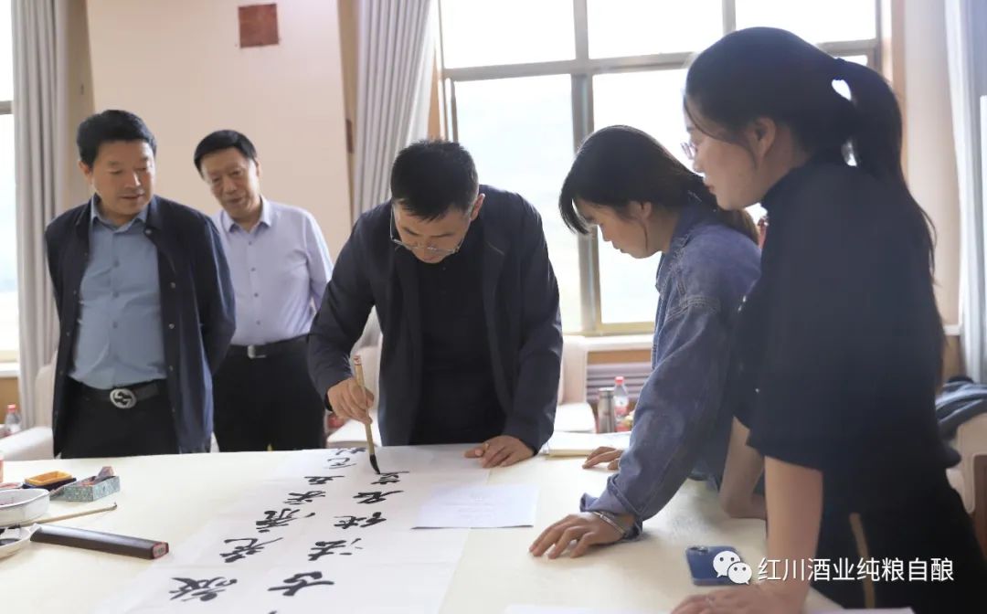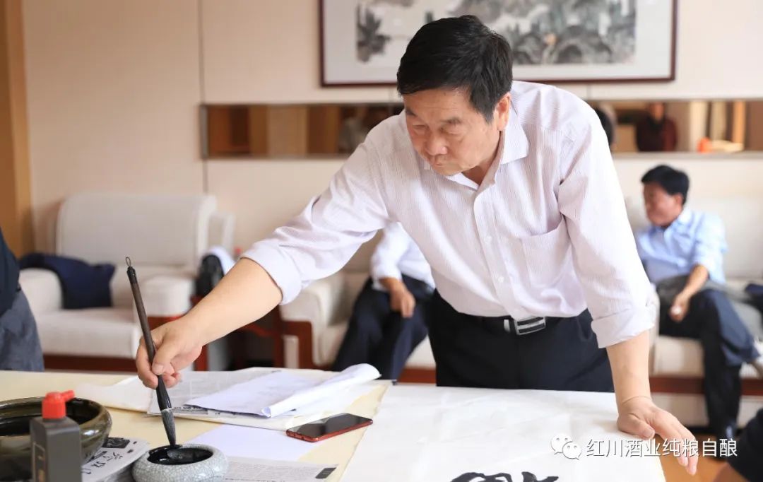 参观结束后,书法家们在公司书法室进行创作,各位书法家挥毫泼墨,各有千秋,有的飘逸,有的厚重,有的隽秀,若行云流水,静动有别,具有独特的艺术风格。丹青描绘时代,文化浸润人心。各位书法家挥洒自如的创作、精湛的书法技艺和美轮美奂的书法作品,为红川酒业留下珍贵的墨宝,丰富了企业文化内涵,提升了企业文化品位,助力了企业的发展,公司也将以各位书法家们的美好祝愿为动力,为当地经济发展做出更大贡献。