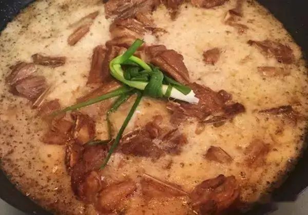 6.放入一瓶啤酒煮开,上面放一个葱结,如果肉少,一罐啤酒就可以了。转中小火焖煮一个小时。