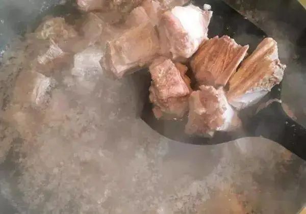2. 锅子里放大半锅水,羊排一起冷水下锅然后烧开后煮两分钟,看到有很多浮沫飘起就可以了。关火, 将羊排用温水清洗干净,沥干水分待用。