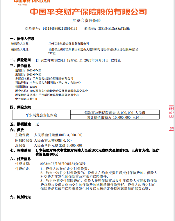 平安财险展览会责任全国承保