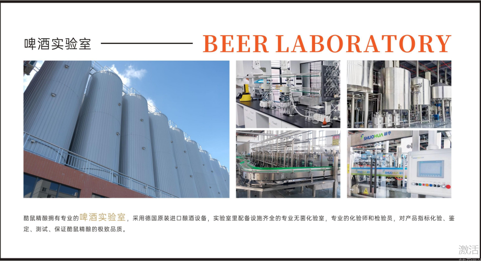 酷鼠精酿拥有专业的啤酒实验室,采用最先进的酿酒设备,实验室里不仅配备专业的无菌化验室,还有专业化验师和检验员,对产品指标化验、鉴定、测试,保证酷鼠精酿的极致品质。
