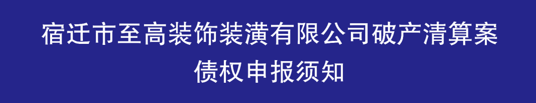 2023年9月21日,宿豫区人民法院作出(2023)苏1311破申71号民事裁定书,裁定受理李岩对宿迁市至高装饰装潢有限公司的破产清算申请,并指定江苏欣扬律师事务所担任管理人。现管理人就债权申报的有关事项告知如下:
