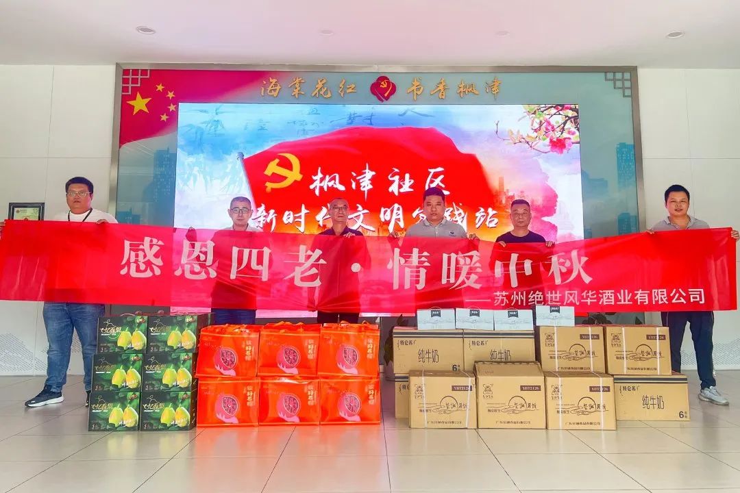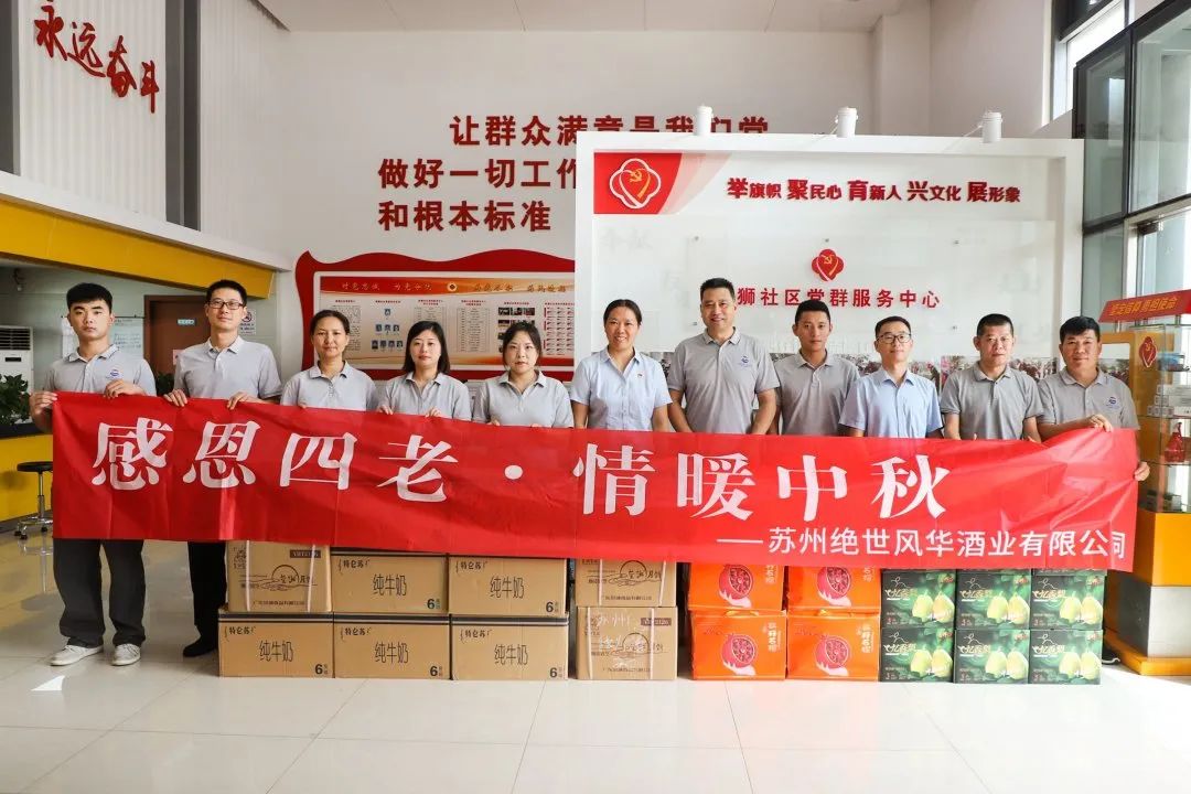 茅台的辉煌历史依靠卓越品质和接续奋斗,走到今天要感恩“四老”——老天爷、老祖宗、老领导和老百姓。25日上午,苏州绝世风华酒业副总经理吴伟、销售总监茆伟分别率队前往新狮社区和枫津社区开展中秋国庆感恩慰问活动,为社区老人送去了月饼、牛奶、水果等慰问品和节日祝福。