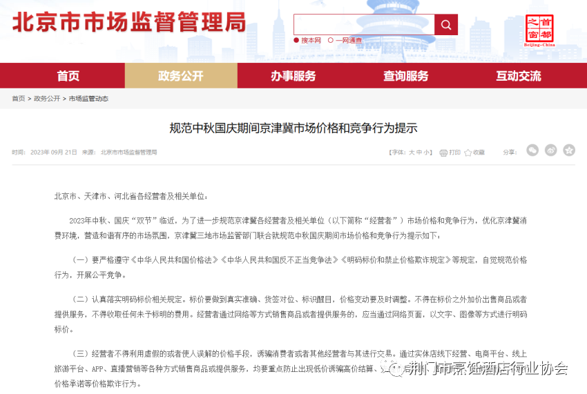 除此以外,西安、四川、江苏、山西等省份以及哈尔滨、南京市、厦门市、武汉市等旅游城市也均先后发布通告规范“国庆”市场价格,进一步保障消费者利益。
