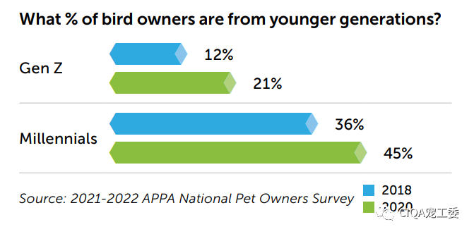 根据美国宠物用品协会(APPA) 的 2021-2022 年全国宠物主人调查,8%的美国家庭(990 万)现在拥有一只宠物鸟。2019年,拥有宠物鸟的家庭数量仅为5%。随着年轻一代业主的出现,以及饮食的高端化,新的机会正在这一类别中迅速展开。让我们来看看最近的趋势。