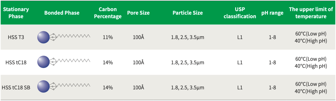 6、MicroPulite® HSS T3色谱柱:搭配更高强度硅胶的三键键合技术选用微纯HSS高强硅胶系列分析色谱填料和三键键合技术,可以耐受更高的压力范围。化合物性质适应性广,可兼容100%的水相,酸性条件耐受性好,柱流失极低,特有的封端技术,让峰形更优异。
