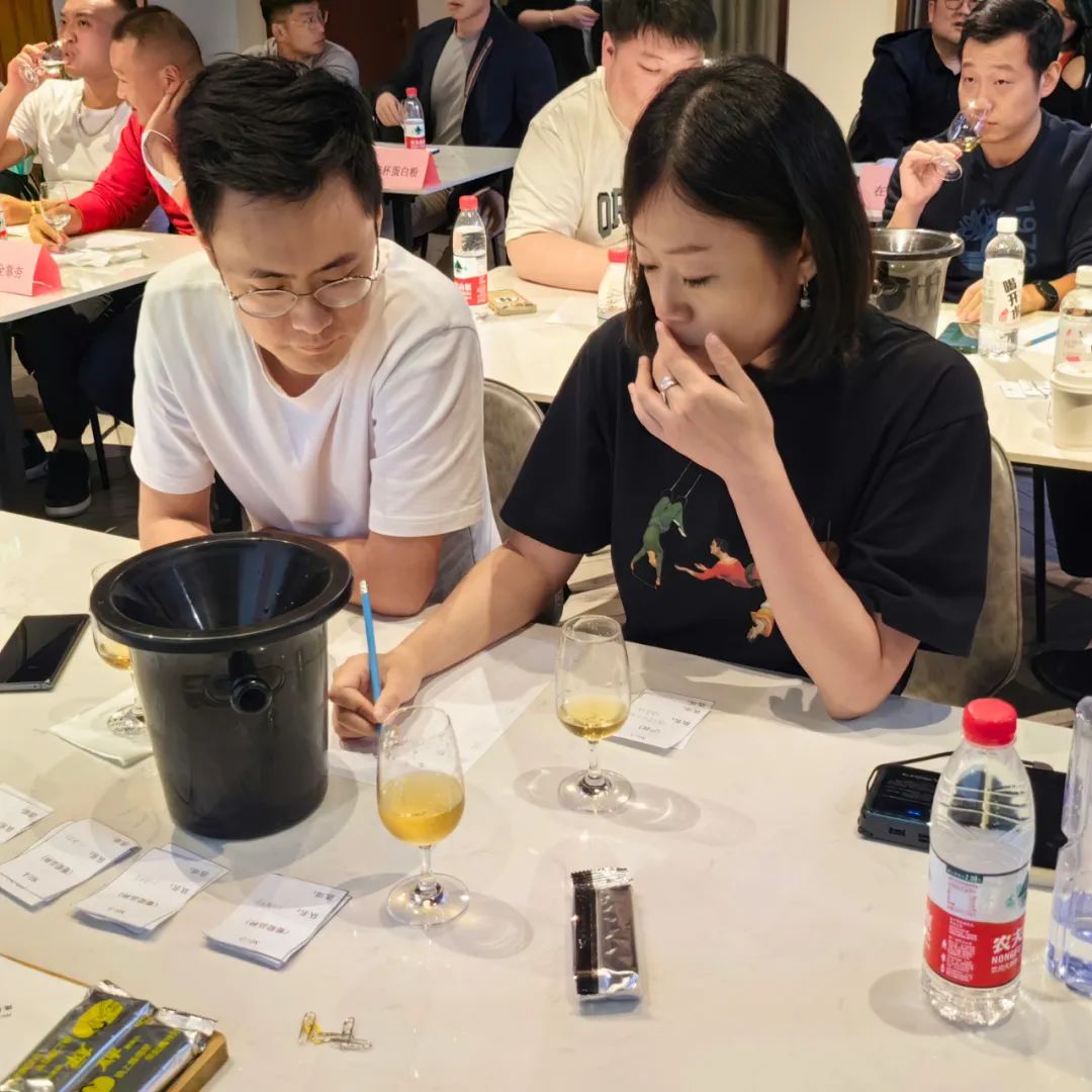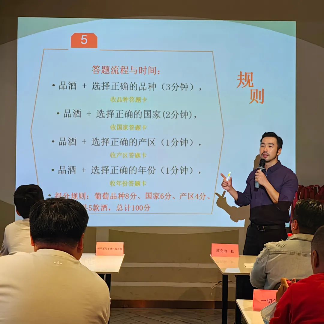 本次比赛共有2白3红共计5款酒,成老师在赛前都会对比赛用酒品鉴。采用选择题的形式,葡萄品种8分,国家6分,产区4分,年份2分,每款酒共计20分。