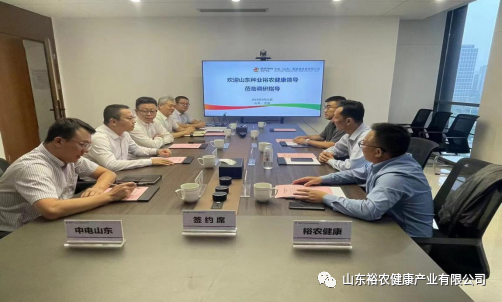 中电(山东)党支部书记刘新宇、副总经理张志刚、副总经理唐炼、投资发展部负责人,裕农健康副总经理张庆金、投资发展部负责人等参加座谈和签约仪式。