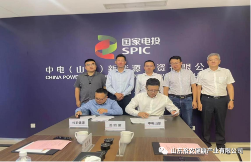 9月25日下午,山东裕农健康产业有限公司董事长周扬一行到中电(山东)新能源投资有限公司参加座谈并签署战略合作协议。