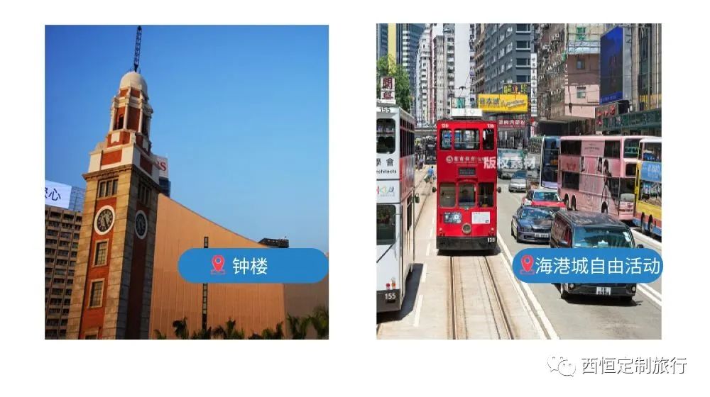 尖沙咀钟楼在海港城附近,游客可根据自身需求选择前往尖沙咀钟楼自由活动或海港城购物天堂自由活动,共约1.5小时。
