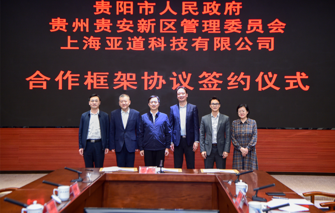 9月22日,贵阳市人民政府、贵安新区管委会与上海亚道科技有限公司战略合作框架协议签约仪式举行。贵阳市市委副书记、市长,贵安新区党工委副书记、管委会主任马宁宇,东浩兰生(集团)有限公司副总裁华慰参会并见证签约。