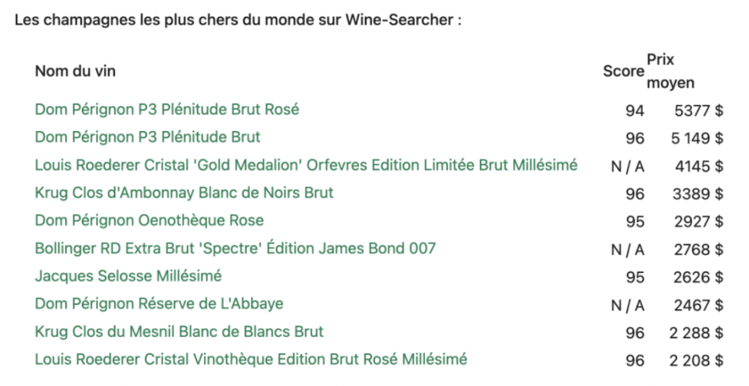 值得注意的是:2020年榜单的冠军是 Moët & Chandon Esprit du Siècle Brut,价格为 6,813 美元。目前其价格已达到 8,771 美元,但由于产量非常有限,因此未包括在今年的榜单中,否则位居榜首的将会是这款香槟。