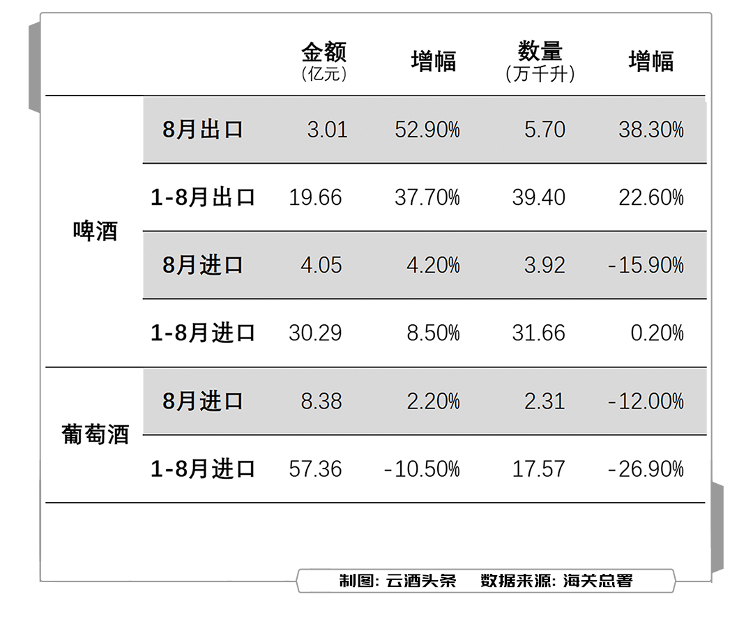 8月瓶装葡萄酒进口量、额环比分别下降6.44%、3.72%