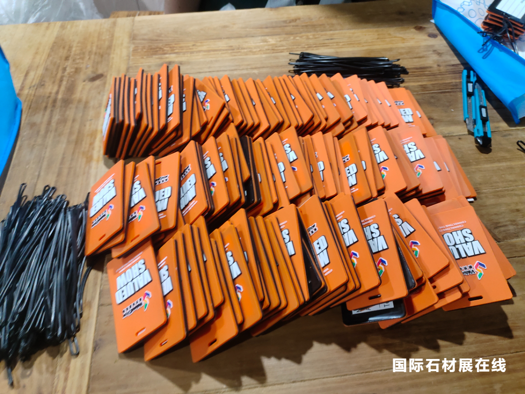 为了预防展会入场发生特殊情况,小天特意为参展的顾客朋友们打印好各位的入展证资料,以确保能够顺利参加展会一同探索石材的奥秘。此外,我们还购买了入展所需的一些必要物品,如入展必备反光安全背心,以方便顾客朋友们在展会期间的准备工作。