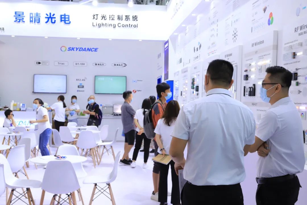 酷热的气温并没有削弱广大朋友前来参观的热情,开展首日就人潮涌动,热闹非凡。景晴展位融入空间、臻于美学的设计,无线控制、简单而顺手的手持遥控、面板遥控操作,手机APP智能控制、多场景多区间控制、0~100%平滑调光、丰富的灯光效果和控制方案等特点,给予了观众朋友最in的视觉冲击和使用体验,得到了许多关注和称赞,圈粉连连。