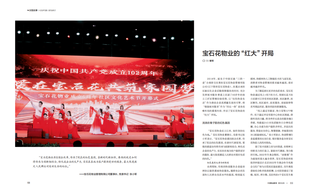 宝石花物业如何以“红色物业生态”作为推动企业高质量发展的引擎,如何切入“大物业”城市服务赛道,发挥城市服务赛道上沉淀了40多年的管理经验优势?