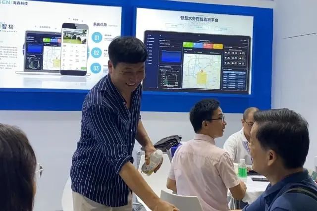 在展会上,我司展示了一系列自主联合开发的水生态智能化系列产品:白鹭智巡、智慧水务大屏、平台系统等,其中也包括了在上一届展会上备受瞩目的“小鸭智检”-在线监测大数据统计分析系统。