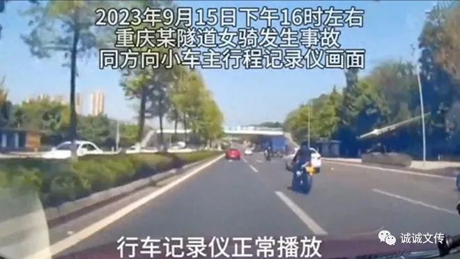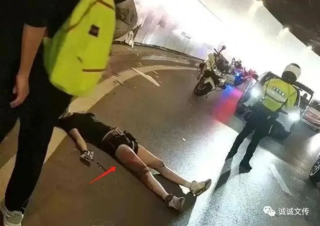 就是这位网红美女短短10秒,在隧道内发生单车车祸,装备掉落一地,满地都是机车“零件”。