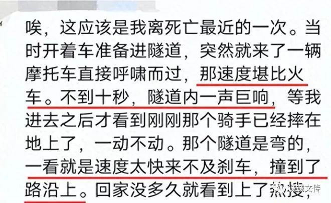 就在头哥第二次超车后进入隧道,车主不到10秒中也进入隧道,猛的“砰”一声巨响。就看下头哥已经发生车祸倒在了地下。