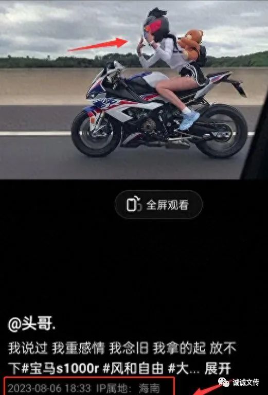 八月份时,头哥骑机车在海南游玩。跟这次一样,她穿着短裤露着大长腿。