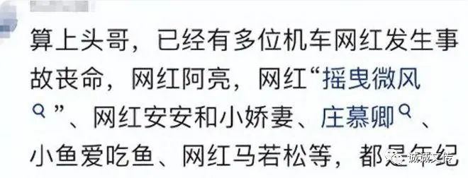 其实在近几年,有很多位骑摩托车的网红都因为骑车失去了生命,并且都很年轻,
