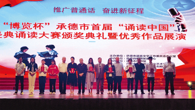 为进一步推广普通话,提升社会大众特别是青少年的语言文字应用能力和语言文化素养,激发其对中华经典的热爱与传承,营造爱读书,读好书,善读书的浓厚氛围,9月22日,承德市首届“博览杯”“诵读中国”经典诵读大赛颁奖典礼暨优秀作品展演活动在承德县承实高中成功举办。