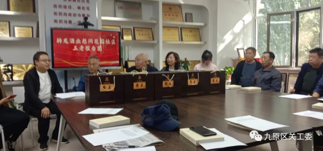 9月26日上午,转龙酒业慰问花园社区“五老”报告团座谈会在花园社区二楼会议室召开。转龙酒业专职副书记带领各部室、车间支部书记一行九人,花园社区尹建琴书记,五老报告团十三人参加。会议由马团长主持,社区尹书记,转龙酒业李副书记分别发表了热情的讲话。回顾了五年来相互配合,精诚团结等过程,同时对今后的工作提出了诚恳的建议。马团长进行了总结讲话。强调“五老”报告团的作用就是无私奉献,号召团员们坚持不懈。最后代表“五老”报告团感谢转龙酒业的慰问!