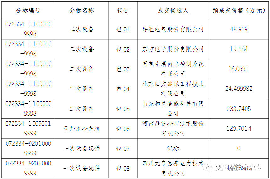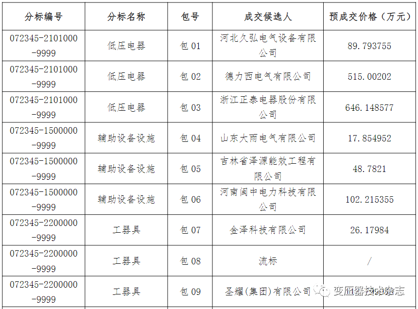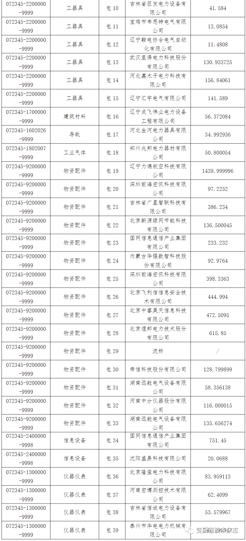 中标公告 | 国网内蒙古东部电力有限公司2023年第四次物资类单一来源非招标采购项目推荐的成交候选人
