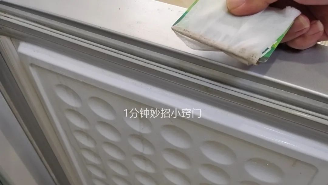 喷洒在冰箱密封条上。用硬币的棱角刮一刮封条缝隙内的污渍,再用湿抹布擦拭,就可以让冰箱密封条焕然一新。