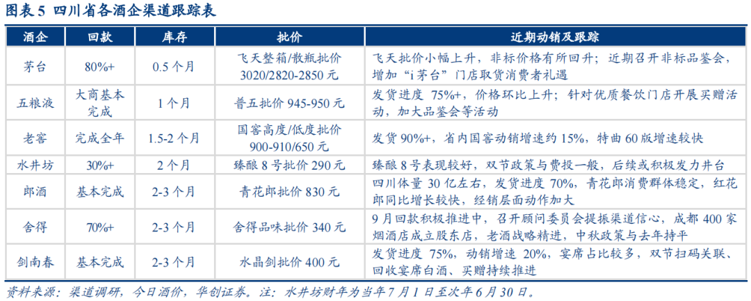 具体内容详见华创证券研究所9月26日发布的报告《白酒中秋系列调研反馈三:需求良性渠道健康,期待双节表现——四川白酒市场调研反馈》