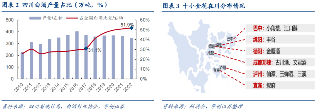 产区条件优越,饮酒文化底蕴深厚。四川自然条件利于酿酒,产业发展成熟,名酒众多,历史上即形成全国性的知名广度与品牌高度。