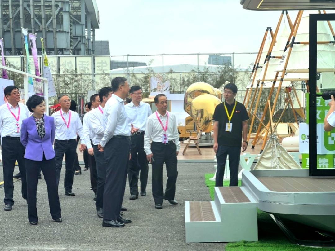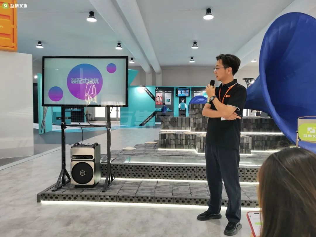 互集创始人高盼作为团队代表接待了调研团队,并向各级领导介绍了互集文旅此次参展的作品以及公司主营项目,汇报了公司全新推出的全站式太空营地能量星球发展现状。