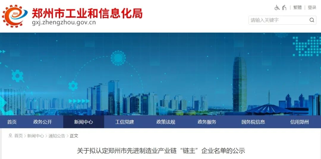 为贯彻落实《郑州市先进制造业产业链链长制工作方案》(郑办〔2023〕17号)等文件精神,根据《郑州市先进制造业产业链“链主”企业评价管理办法(2023-2025年)(试行)》(郑链长办〔2023〕3号)要求,市链长办开展了“链主”企业申报工作,经企业申报、区县(市)推荐、专家评审等程序,初步确定了郑州煤矿机械集团股份有限公司等62家“链主”企业名单,现予以公示。如有异议,请在公示期内以书面形式实名向郑州市工信局反映。