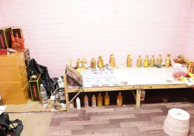 在搜捕现场,警方发现该制售假酒犯罪团伙以高端原料制作假酒。以口味相近的“茅台王子酒”“飞天茅台”等正品酒为基酒,加入各项添加剂进行勾兑、灌装,若非茅台厂家的品酒师,普通消费者很难分辨。