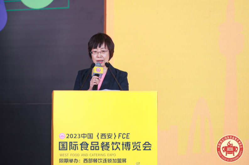 中国副食流通协会副会长董军芳进行致辞,她表示此次活动对于西部地区餐饮品牌拓展市场,促进行业可持续发展具有非常重要的意义,在加强品牌知名度和影响力,赢得更好发展机会的同时,也是学习和交流的平台,她希望通过此次活动,能够促进西部地区餐饮行业的繁荣发展,为人民群众提供更好的餐饮服务。