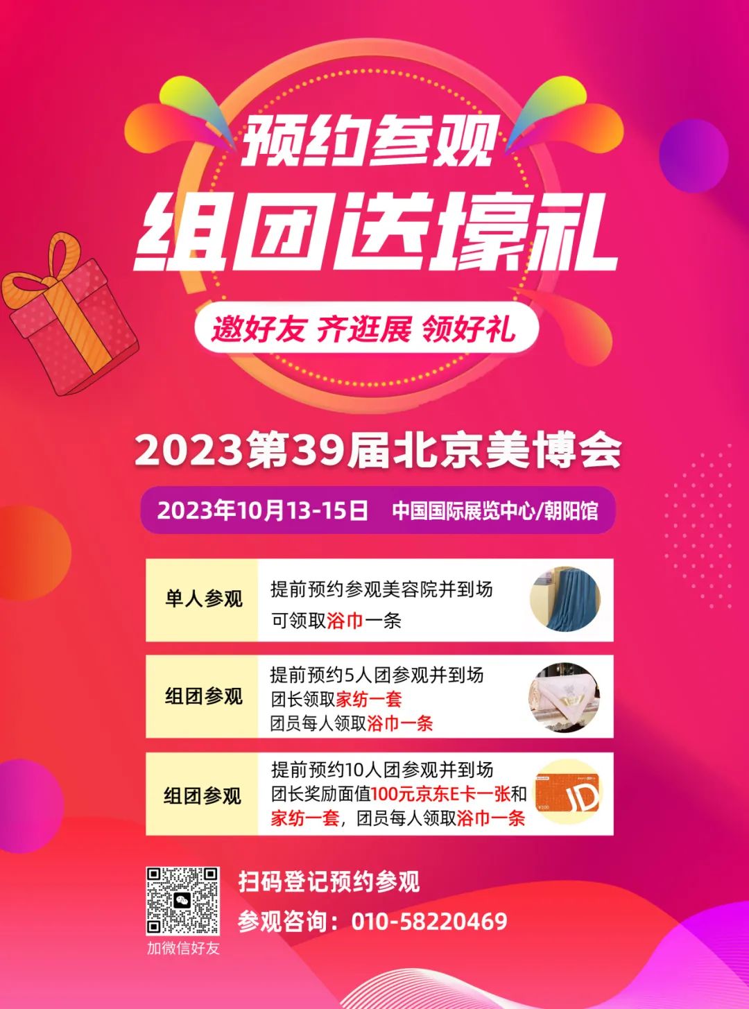 2023第39届北京美博会(秋季)于2023年10月13日-15日在中国国际展览中心朝阳馆举行,北京国际美容化妆品博览会(简称“北京美博会”)由北京世博联展览服务有限公司主办。展品覆盖专业美容产品,个人护理用品,化妆品,医美整形,健康养生,日化包材,女性时尚用品,美容微商,一场美业盛会10月13日将开启!