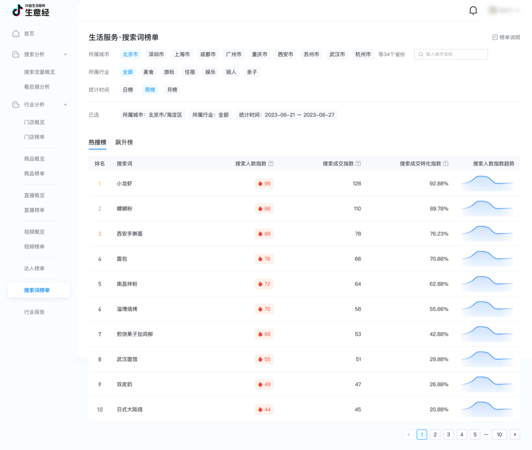 抖音生活服务凭借海量的兴趣用户和丰富的经营工具等优势,吸引了大批商家入驻,为帮助更多商家找到经营提升点与机会点,抖音生活服务特别推出「生意经」产品。作为抖音生活服务团队官方出品的数据平台,「生意经」提供了行业动态、优秀榜单、行业概览等维度的数据分析,具备行业数据报告订阅/推送等能力,助力商家洞悉行业生态,发现热点内容。