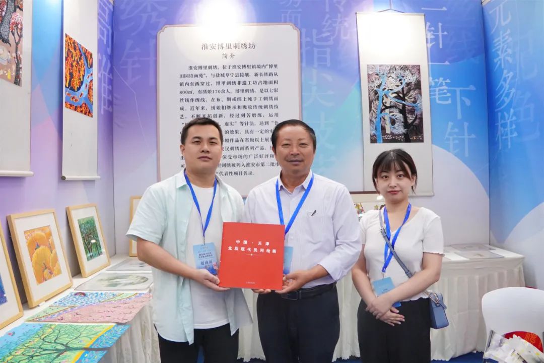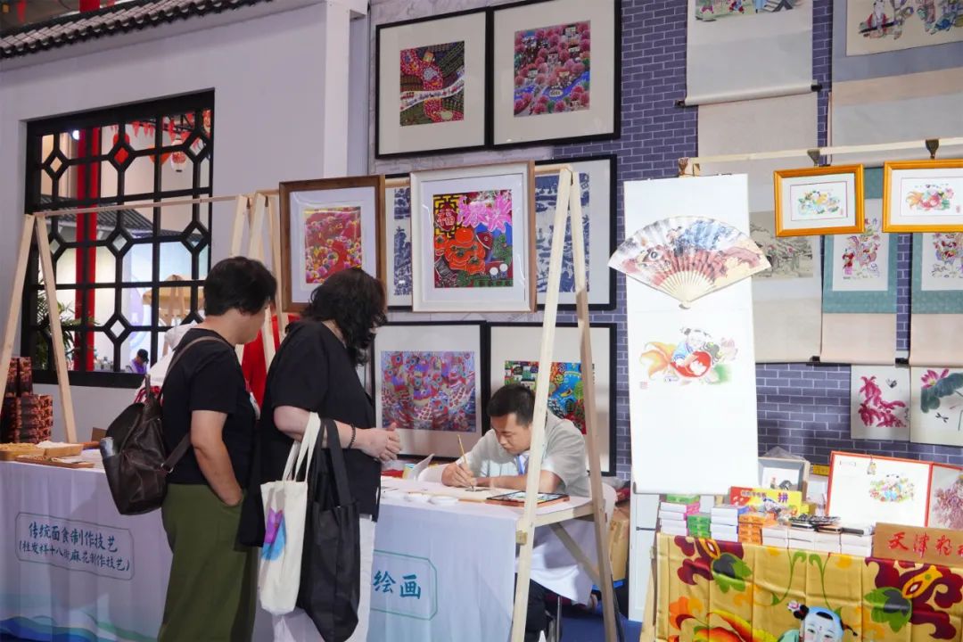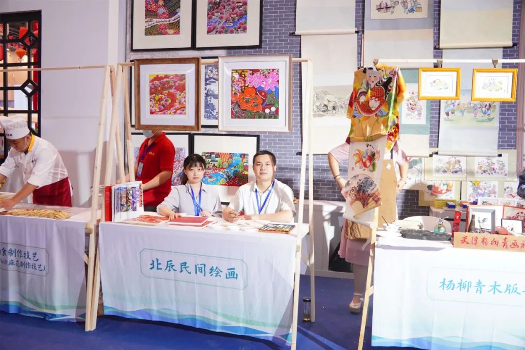 北辰民间绘画是植根于津郊沃土的民间艺术之花,已成为一朵独具大运河风韵的民间艺术奇葩。它具有北辰人质朴、率直、热情、幽默的性格,吸收了剪纸、刺绣、草编、木版年画等民间艺术精华,随心赋彩,火爆明快。传承人老师在创作中为大家带来了富于烟火气息的人文生活图景,让更多的参展群众了解、喜爱上了这项独具特色的北辰非遗。